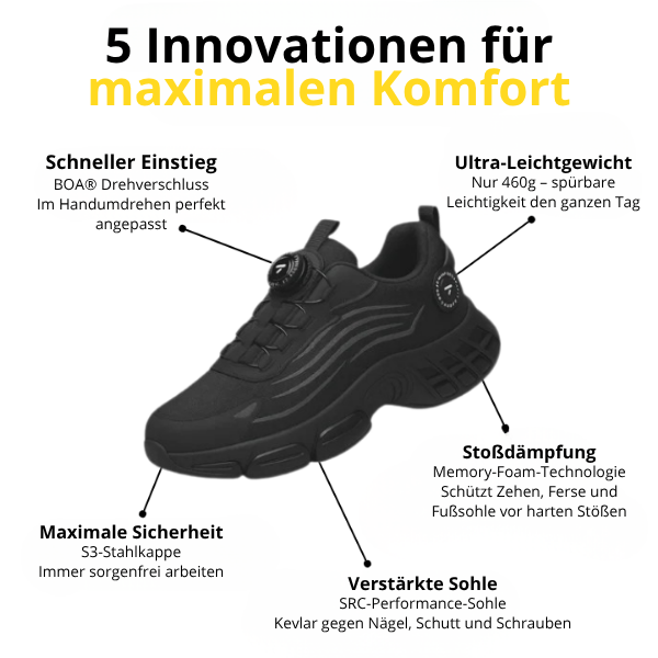 Ultraleicht, den ganzen Tag bequem und nach S3-Norm geschützt – diese Schuhe machen deinen Arbeitsalltag einfach besser. Perfekt für alle, die bei Komfort und Sicherheit keine Kompromisse wollen.