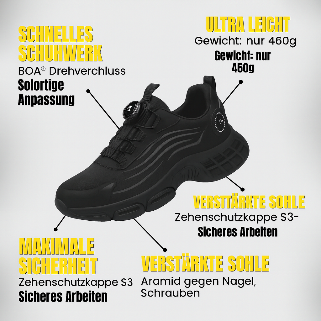 Während klassische Sicherheitsschuhe oft schwer und unbequem sind, vereinen die FYNIX Stil, Komfort und zertifizierten Schutz (S3).